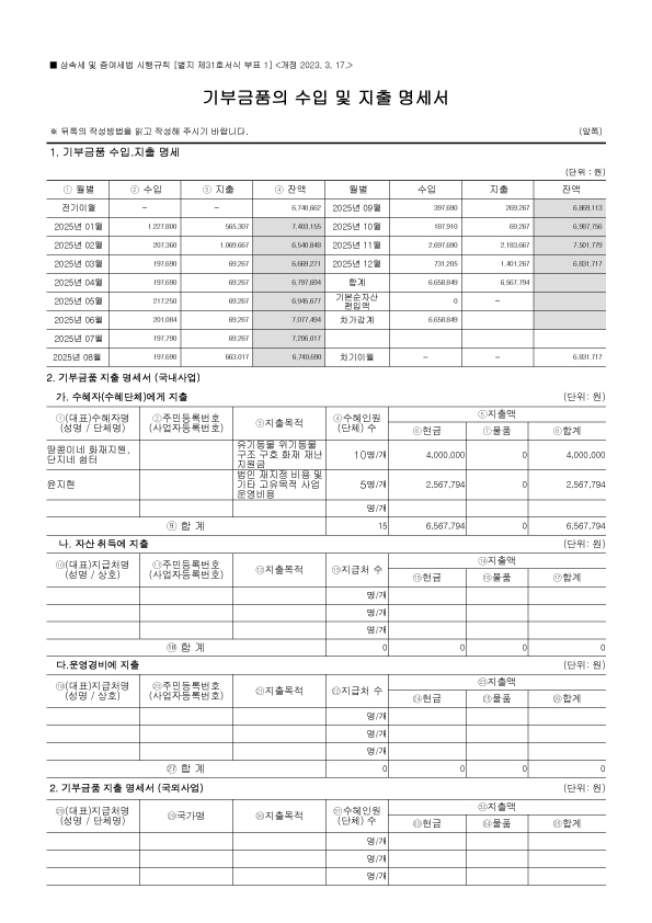 | 13 | 2023 연간 기부금 모금액 및 활용실적 명세서 | 관리자 | 2025-02-19 | 38 | |